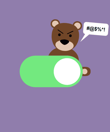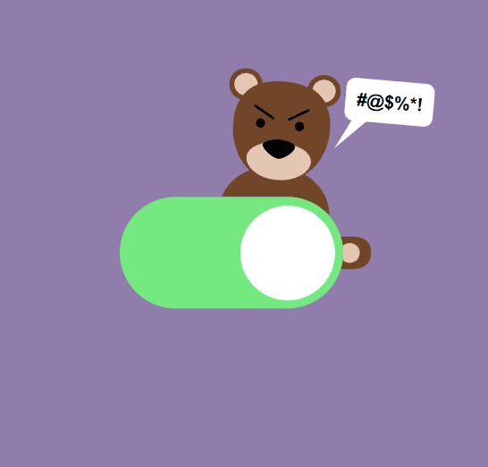 An impossible checkbox is an interactive web element that appears to be a standard toggle switch but includes animated obstacles that prevent easy activation. Our implementation features a cute animated bear that physically emerges from behind the interface to turn off the switch whenever users attempt to check it.
