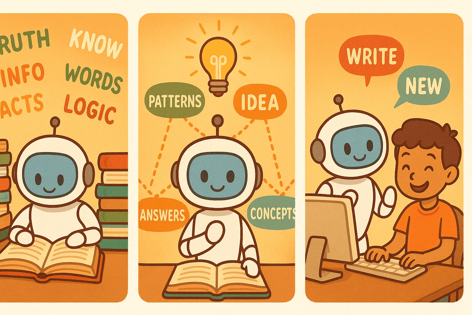 Step 2: Pattern Recognition The AI looks for patterns in how words connect, similar to how kids learn that “Once upon a time” usually starts fairy tales.